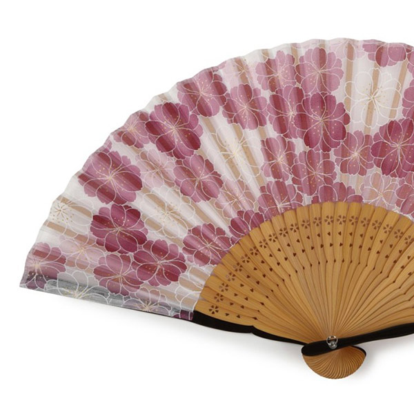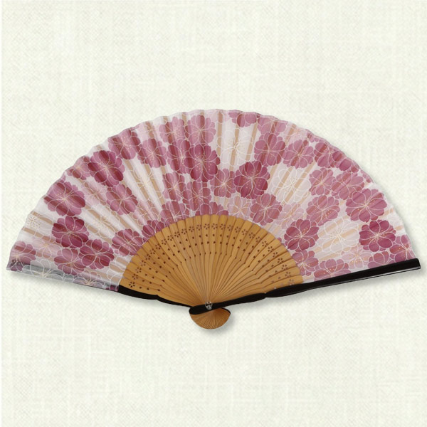 品番:124334 婦人用シルク扇子 八重桜 紫