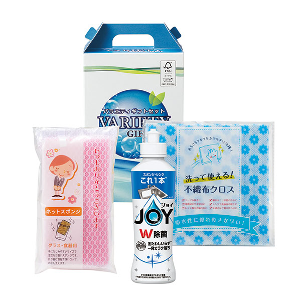 除菌洗剤・スポンジ・不織布クロス入りで、ノベルティとしても喜ばれます。