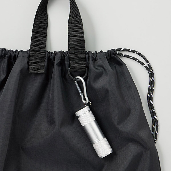 キーホルダーやカラビナなどを掛けれます。(※ライト・カラビナは付属しません)