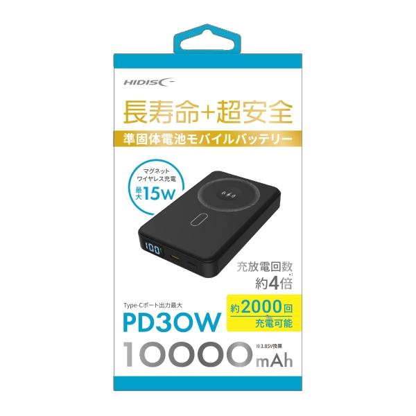 品番:124382 マグネットワイヤレス充電対応 準固体電池 10000mAh