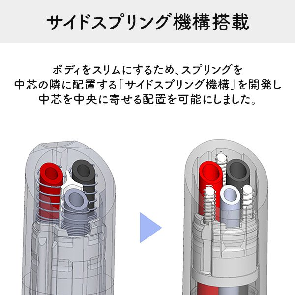 独自のサイドスプリング機構により、スリムなボディで握りやすく、色の切り替えもさっとスムーズ。