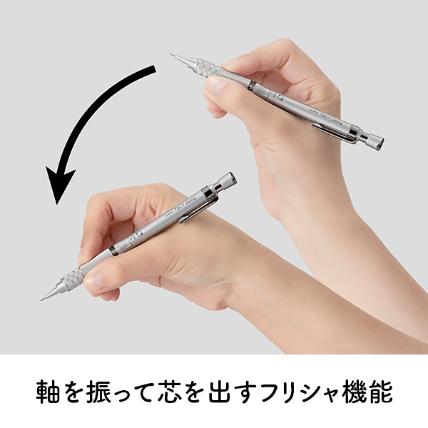 軸を振るだけで芯が出る便利なフリシャ機能搭載のシャープペンシル。