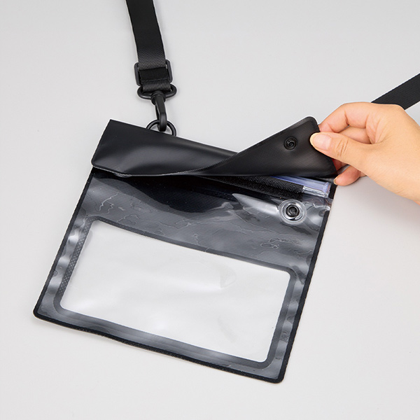 スマートフォン以外にも貴重品などの小物を一緒に収納することができます。