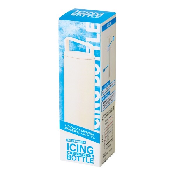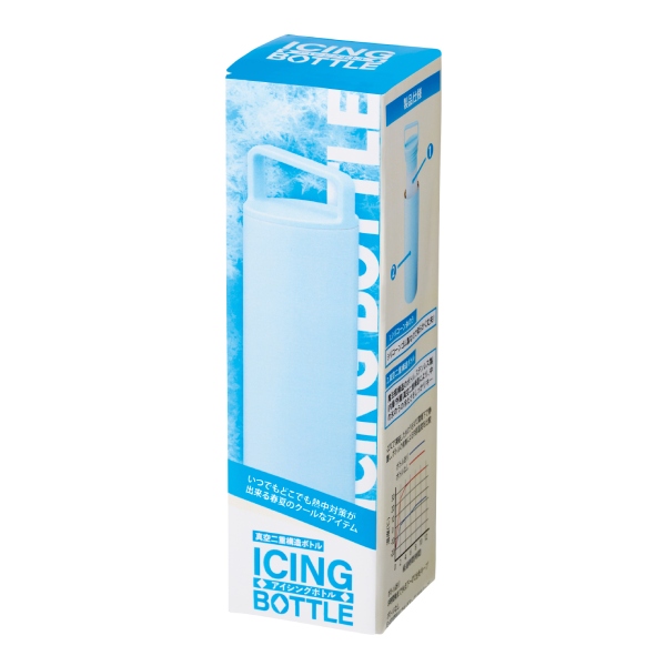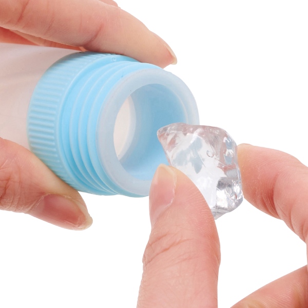 凍らせたスティック型のシリコーン氷のうを、真空二重構造のボトルにセットして使う新感覚のアイシングボトル。