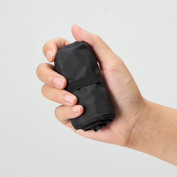 超薄手・超軽量かつ、ハンドル部分のゴムで止めていただくことで極小サイズになります。