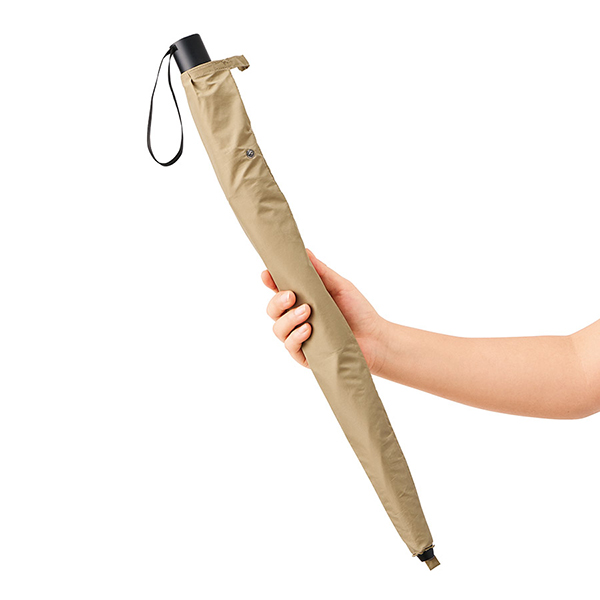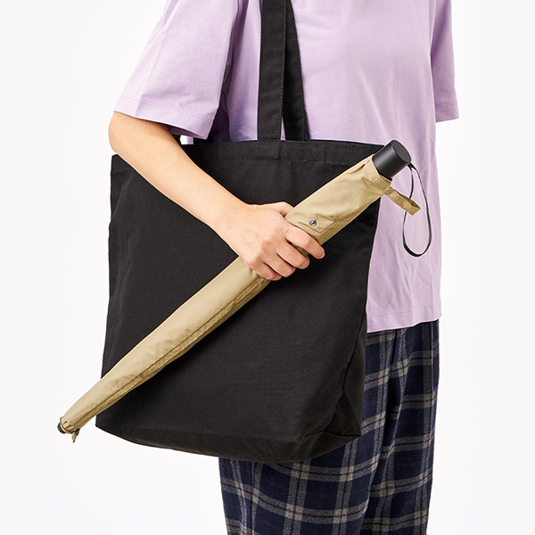 カバンに入れる際はたたんで、雨傘として使用したあとは伸ばしたまま手をあまり濡らさずに袋にしまうことができます。