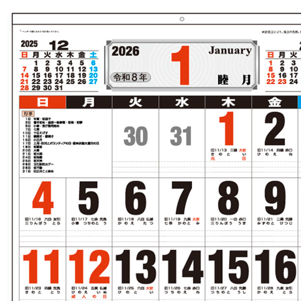 表紙の裏面は便利な年間予定表いなっておりますので、無駄なくお使いいただけます。