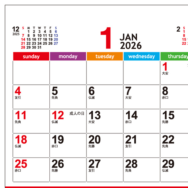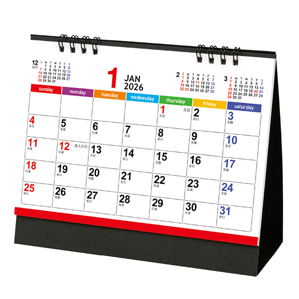 しっかりした台紙で置いた時の安定感が大人気の卓上カレンダー「セブンデイズセブンカラーズ」