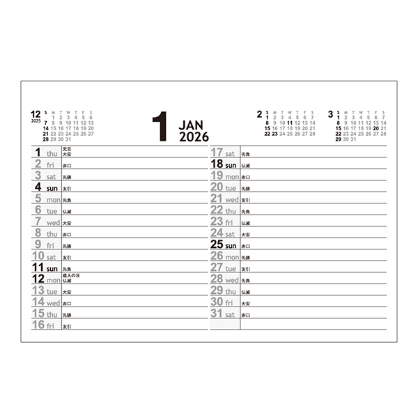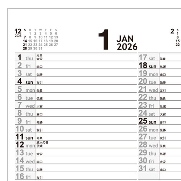 ボールペンなど筆記用具のインクがのりやすく、楽にスケジュールを書き込める、カレンダーに最適の用紙です。