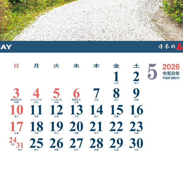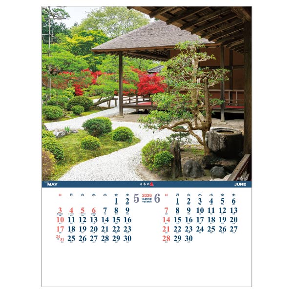 品番:54696 壁掛けカレンダー シャッター・メモ 日本の庭(地図付)