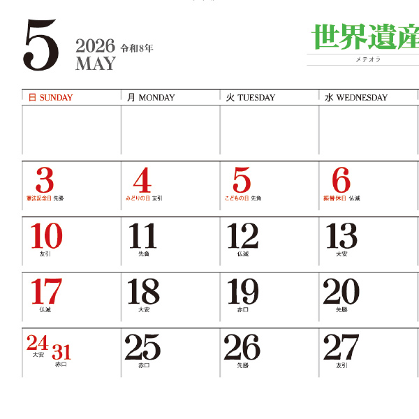 品番:54719 壁掛けカレンダー ユネスコ世界遺産