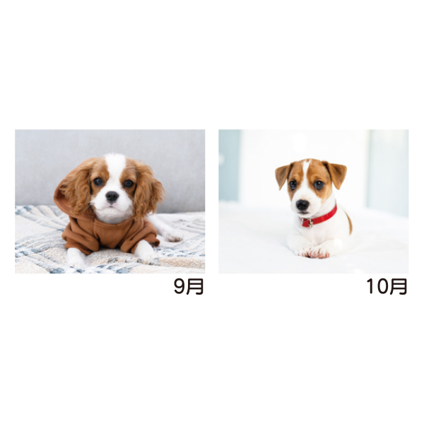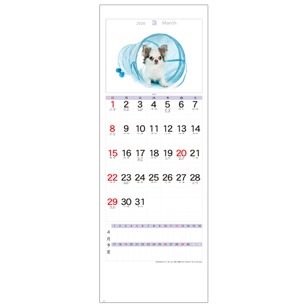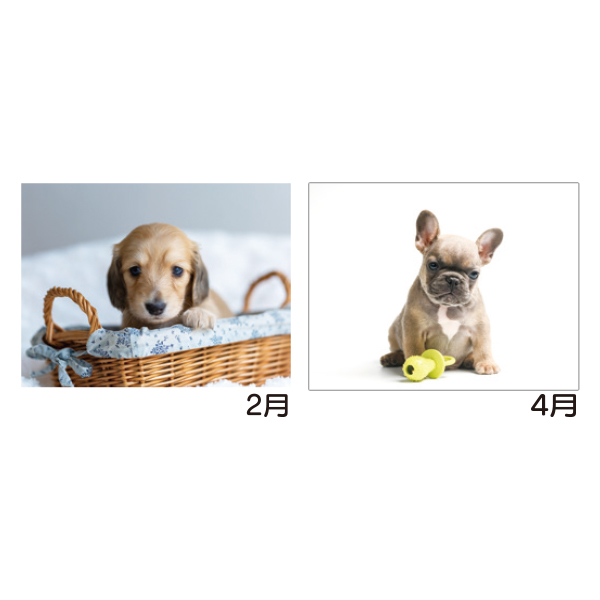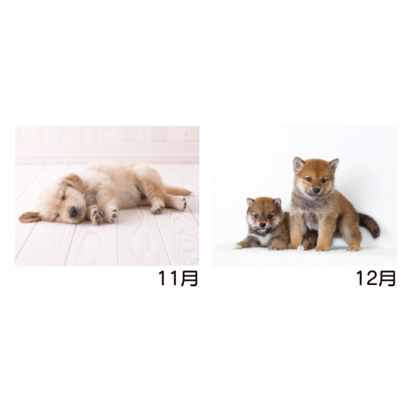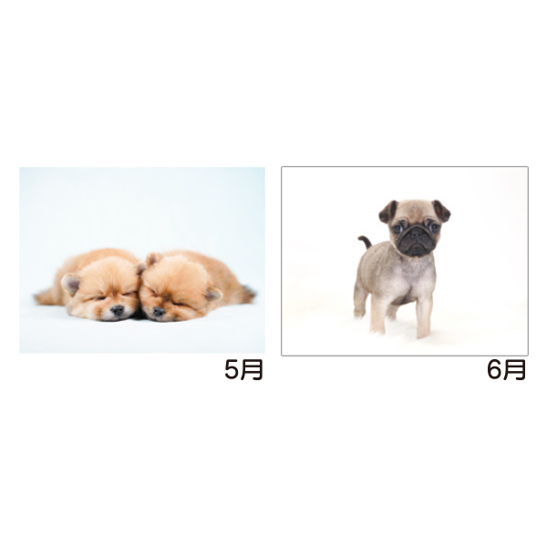 元気いっぱいの可愛い仔犬たちの壁掛けカレンダー。