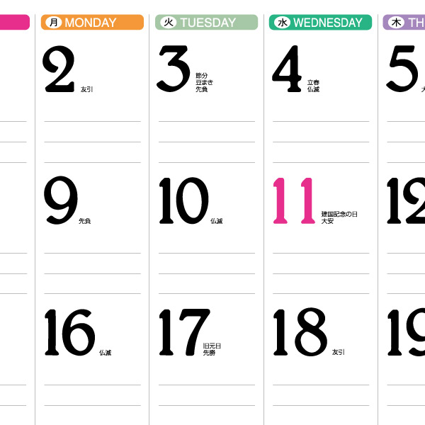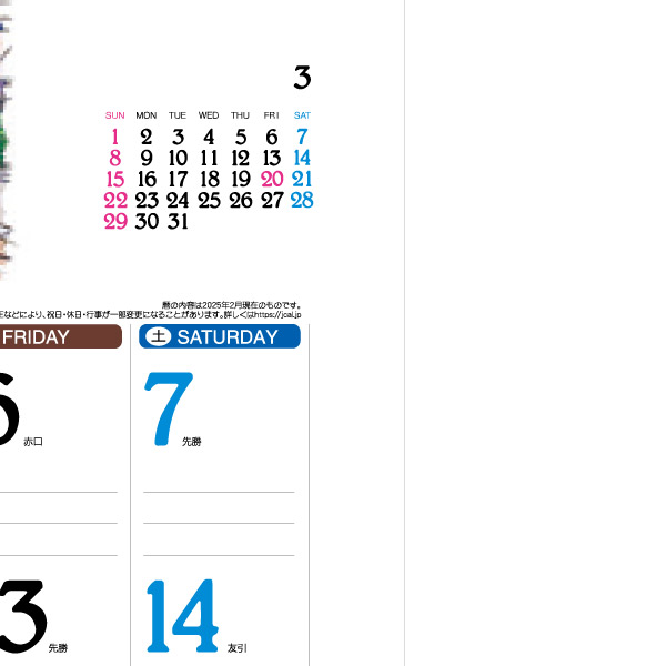 また、罫線入りのメモスペースも十分とった使いやすいカレンダーです。