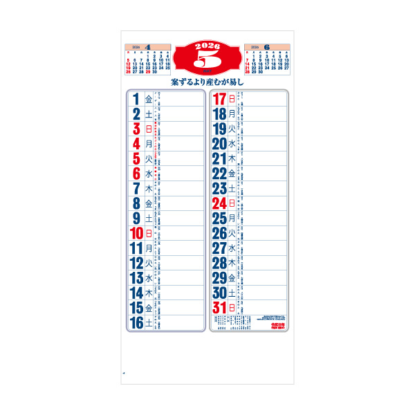 見やすい日付と書き込みやすいメモが特徴の使い勝手の良い壁掛けカレンダーです。
