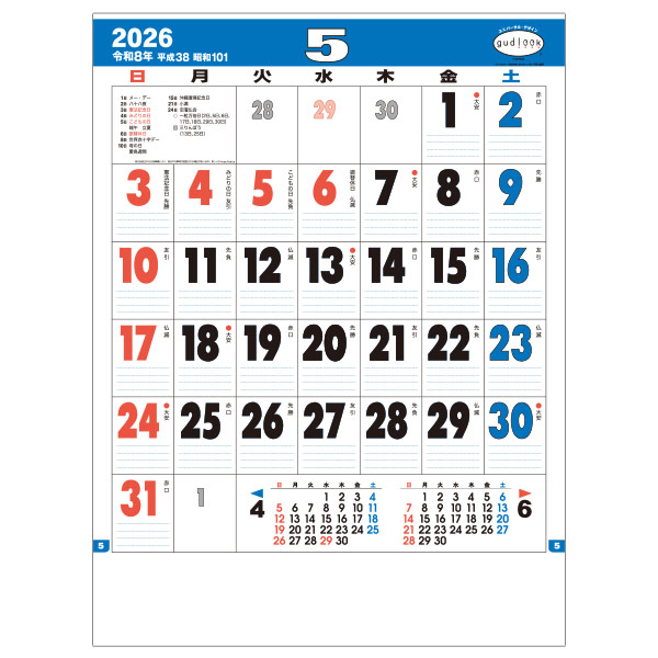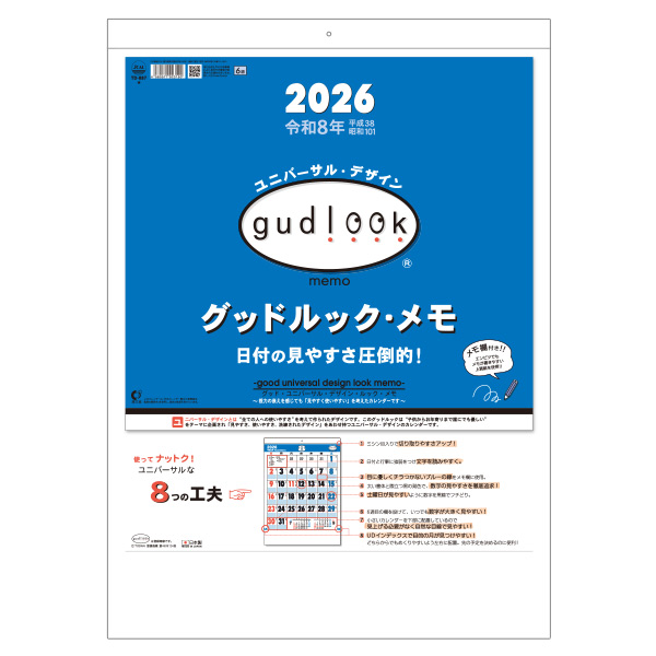 品番:54872 壁掛けカレンダー グッドルック メモ