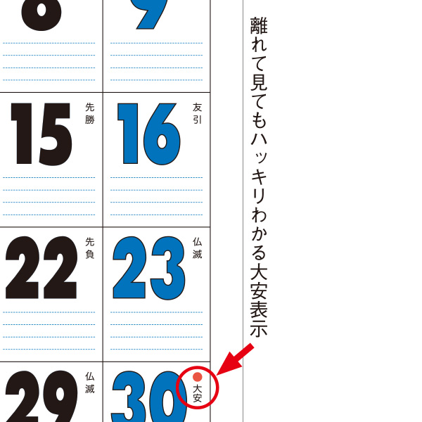 グッドルックでは、この小さなカレンダーを下部にレイアウトすることで、見上げる姿勢をとることなく、自然な目線で見やすくしました。
