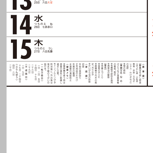 ◆農事暦・家庭暦・健康メモ記載