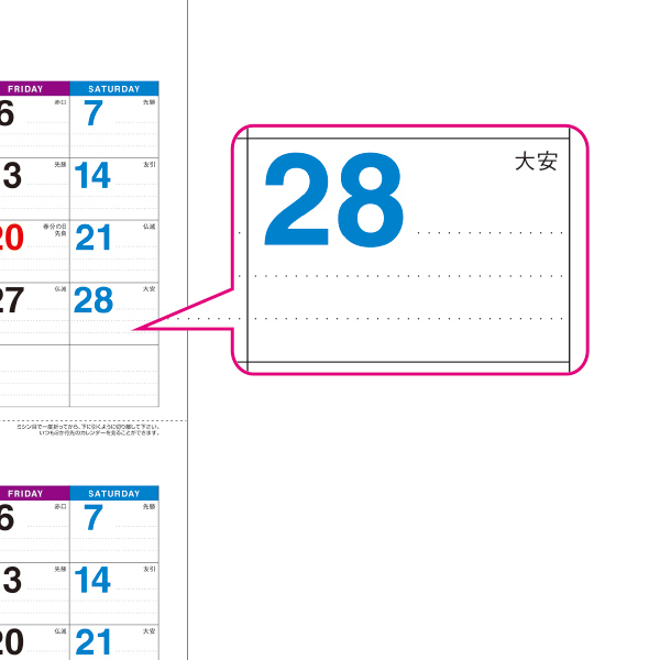 品番:54897 壁掛けカレンダー カラーラインメモ(3か月文字)