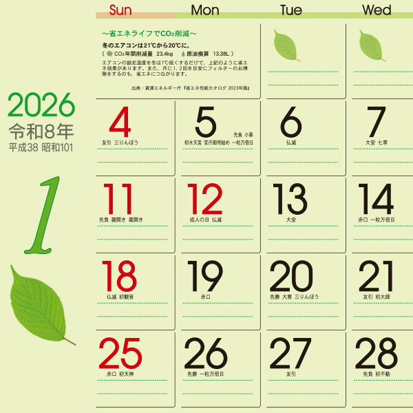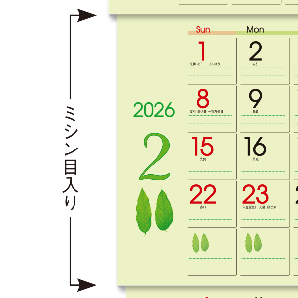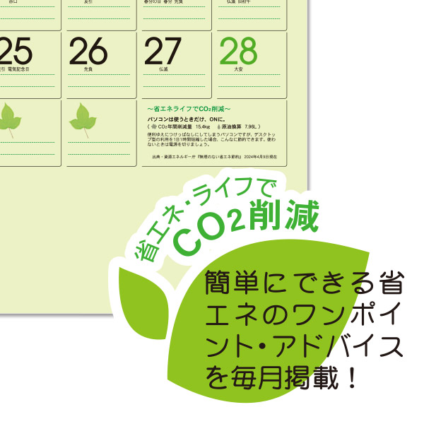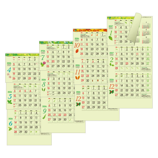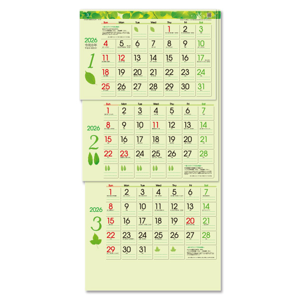 品番:54899 壁掛けカレンダー グリーン3ヶ月eco 日付マーカー付(上から順タイプ)