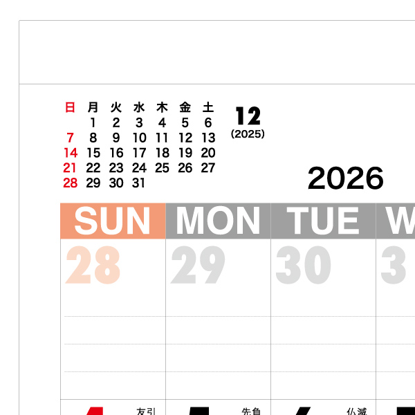 壁掛けカレンダーの金具部分を使用しない「ホットメルト製本(紙製本)」。