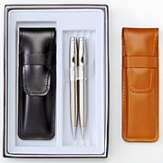 品番:58781 スリム牛革ペンケースギフト エレガントシルバー回転