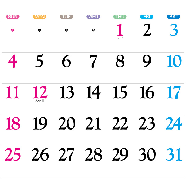 ※祝日法の改正などにより、祝日・休日・行事が一部変更になることがあります。
