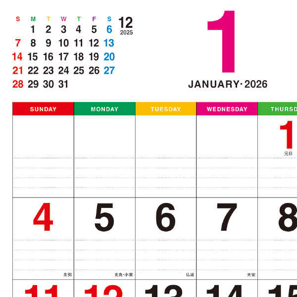 大きくて太い数字は見やすさ抜群!どこにでもフィットして、場所を選ばないカレンダーです。