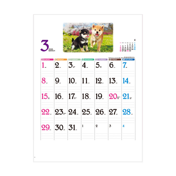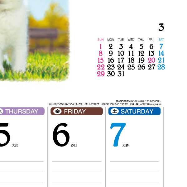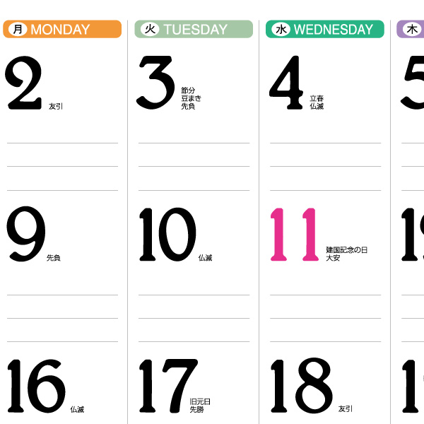 スッキリとした見やすい文字に、罫線入りの大きなメモスペースと実用性も抜群です。