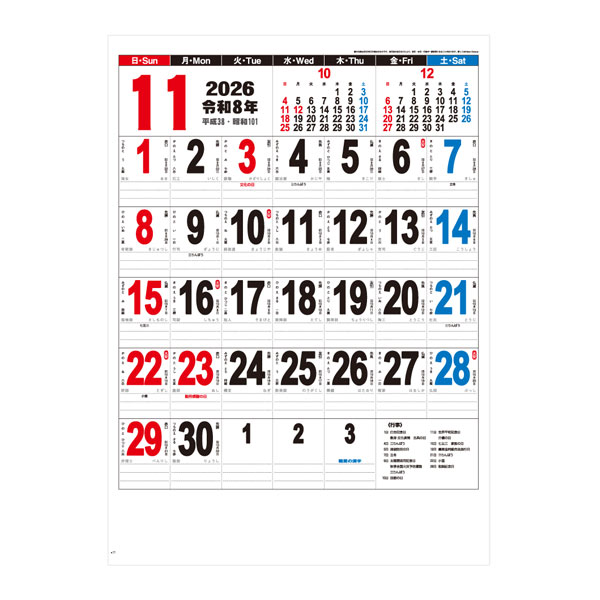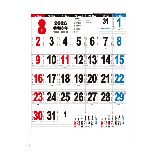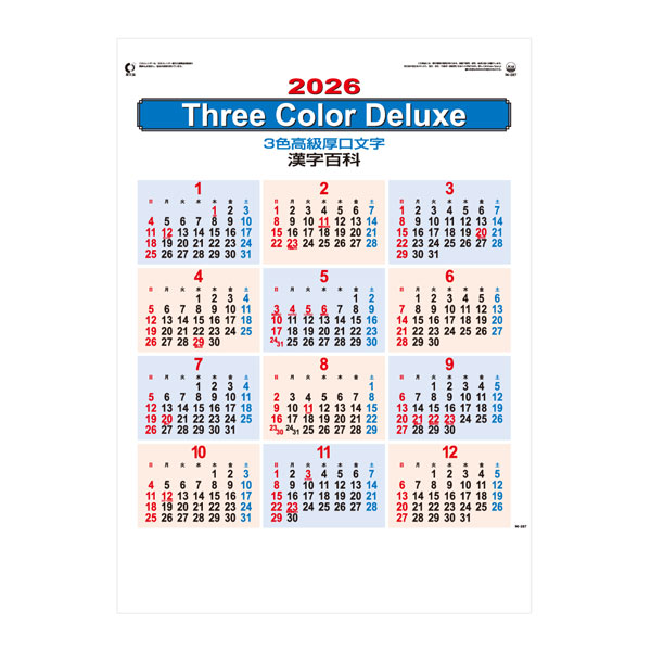 六曜等の暦情報だけでなく、1日1語の漢字知識が身につく情報満載の壁掛けカレンダーです。