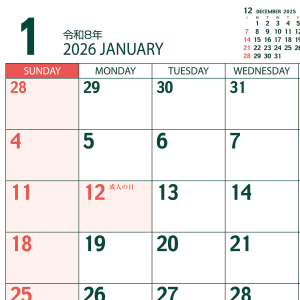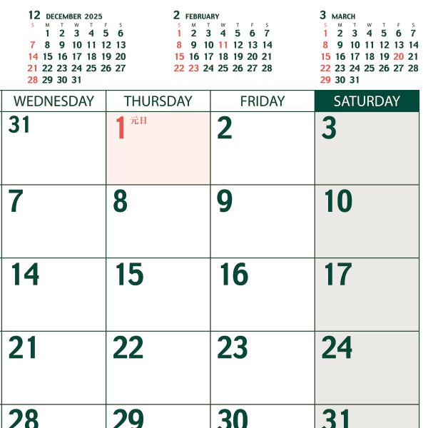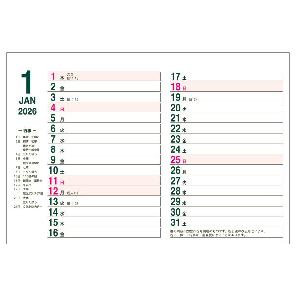 ◆2022年版より裏面デザインが変更し、旧暦・二十四節気・行事欄が追加されました。