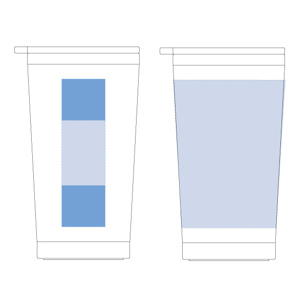 名入れ位置(左/パッド印刷、右/回転シルク印刷)※濃い青はレイアウト可能範囲、薄い青が名入れサイズになります。