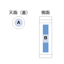 | 場所: | フタ天面(中央部)または 本体側面(中央部) |