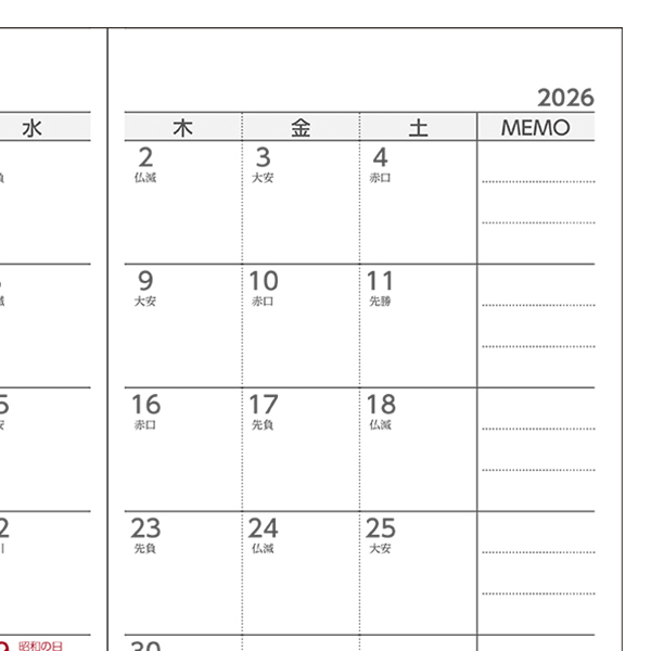 右端には便利なメモ欄付き。携帯に便利な薄型タイプです。
