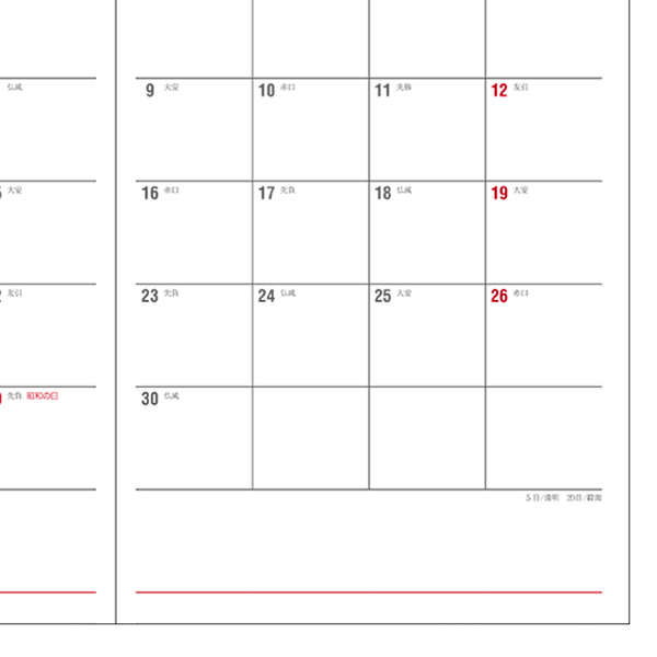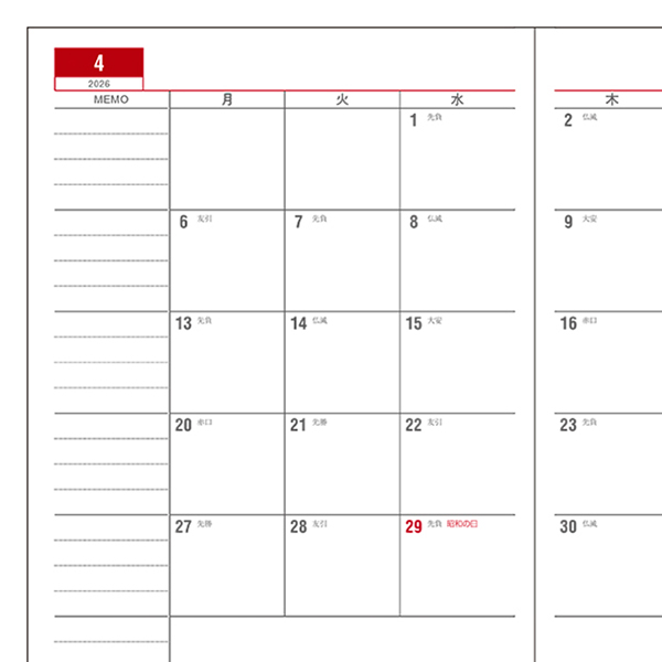 月間予定表はカレンダーの様に使えるブロックタイプで曜日ごとのスケジュール管理がしやすく便利。