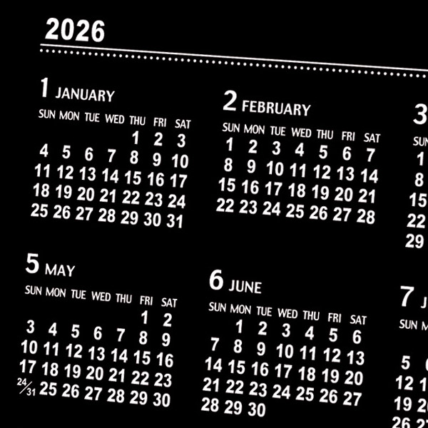 翌年の1月まで入って便利。一目で分かる年表が台紙に入っています。
