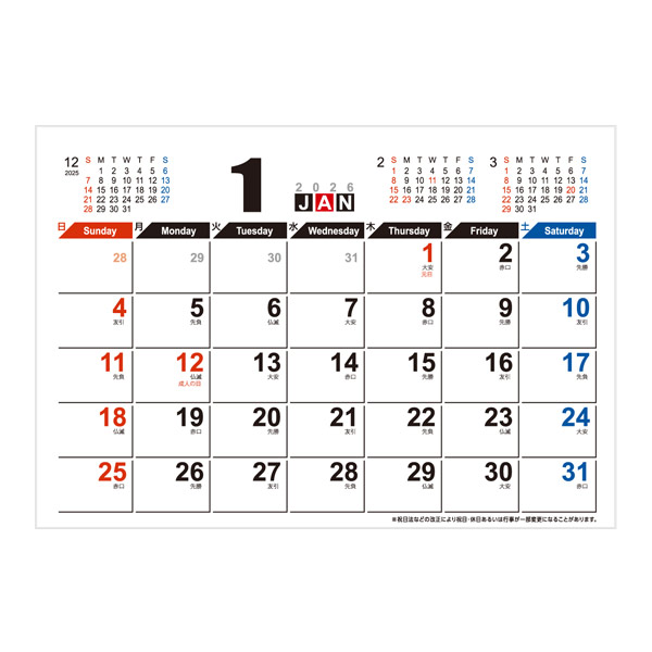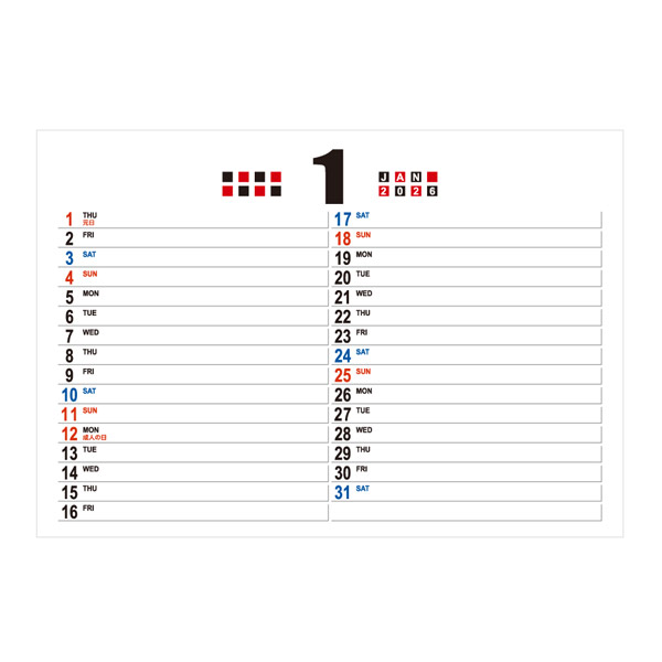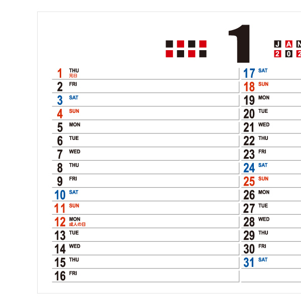 裏面には、スケジュール管理に便利な広いメモスペースが付いています。