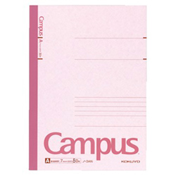 罫幅/普通横罫(A罫)7mm、サイズ/6号(セミB5)、行数/30行、枚数/80枚、製本様式/無線とじ