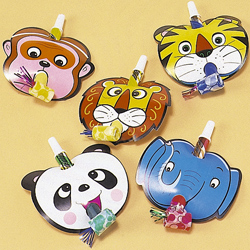 動物たちの口元から筒が伸びているので、息を吹いて紙筒が伸びたり元通りに丸まったりすると、まるで動物たちが遊んでいるみたいに見える楽しいデザインです。
