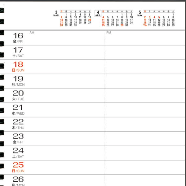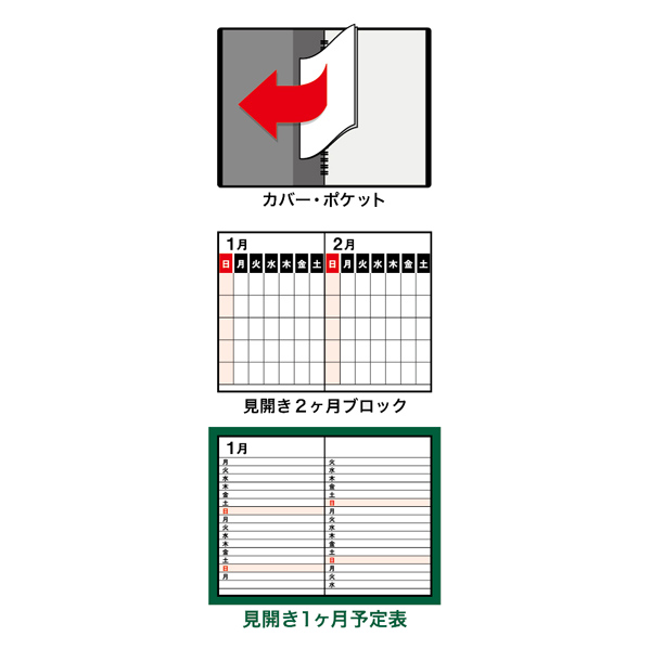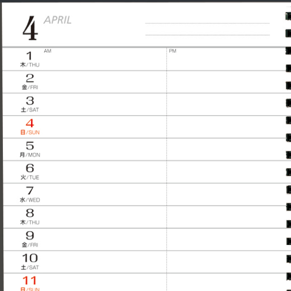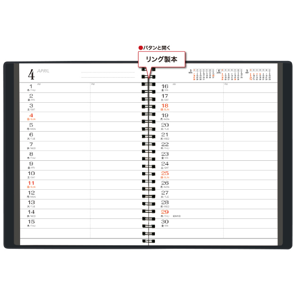 ◆188頁、黒ツインリング製本、本文2色、見開き1ヶ月