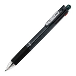 1本で黒・青・赤・緑の4色ジェルインクボールペン(ボール径0.4mm)にシャープ(0.5mm)の5機能が使える多機能ペンです。