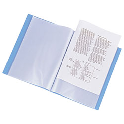 製本タイプのクリヤーブックは、1枚1枚のポケットが一定間隔で背部に溶着されているので、見開きがスッキリ、書類が隅々までキレイに見えます。