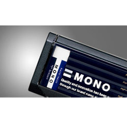 トンボ鉛筆の超微粒子化技術を結晶化したMONO シリーズの初代鉛筆・モノ。「唯一の、無類の」という意味を持つギリシャ語の「MONOS」に由来して「MONO」と名付けられました。