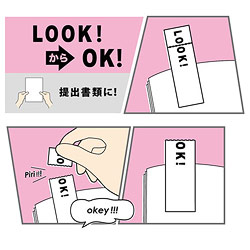 「LOOK」から「OK」へ。会社での伝言にピッタリなユニーク付箋です。