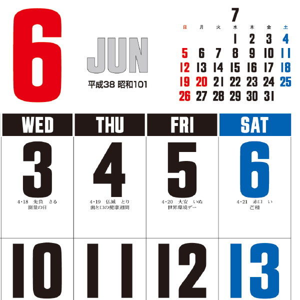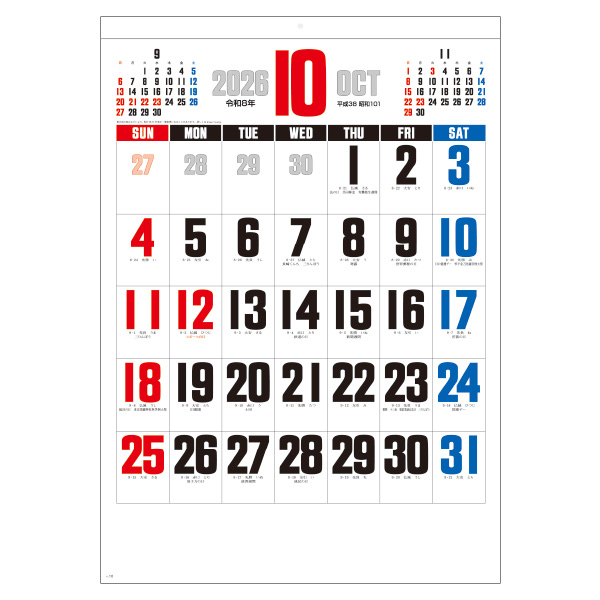 品番:79398 壁掛けカレンダー 3色デラックス文字