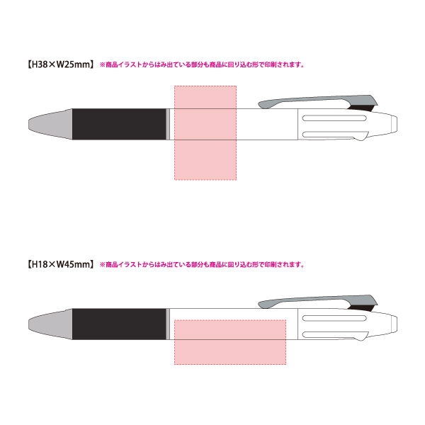 - ■可能サイズ: パッド印刷/縦5×横40mm、回転シルク印刷/縦38×横25mmまたは縦18×横45mm