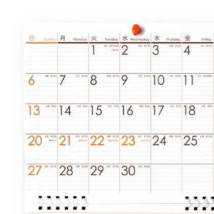 各日付欄と、大きめの空きスペースに罫線が入っているので書き込みしやすく、とても実用的!
