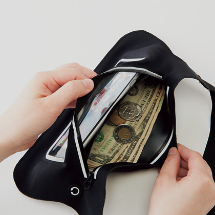 ポーチ内部は二重構造になっており、スマートフォンの他に小物なども収納することができます。