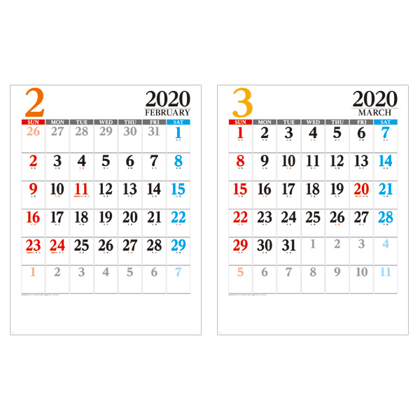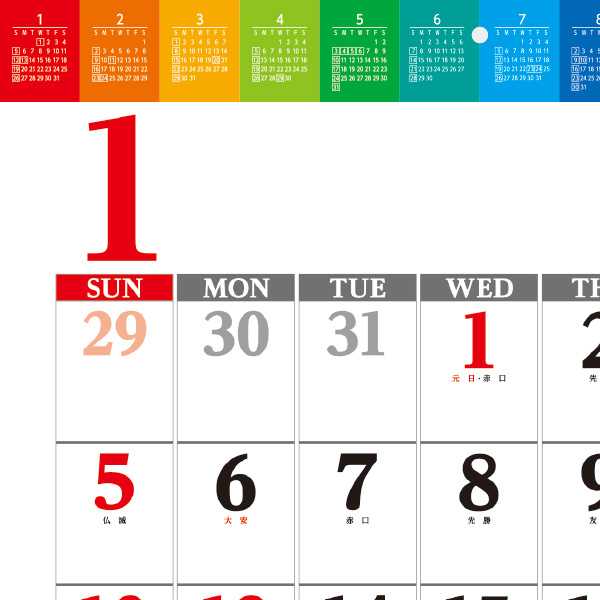 カラフルなヘッダー&機能的な6週表記がポイント☆