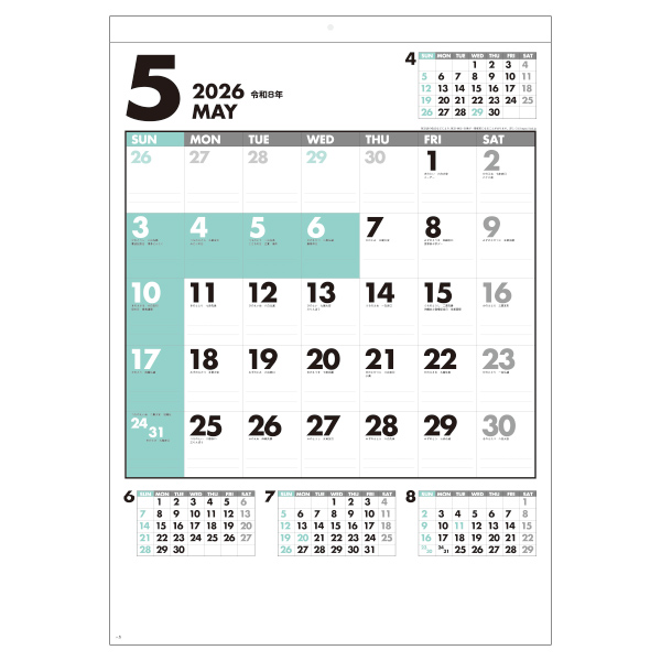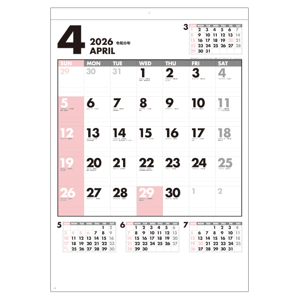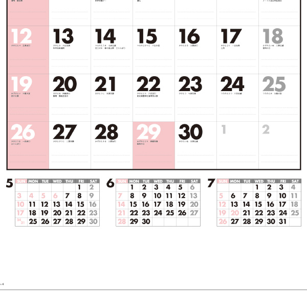 品番:87320 壁掛けカレンダー ファイブマンス文字(SG-445)