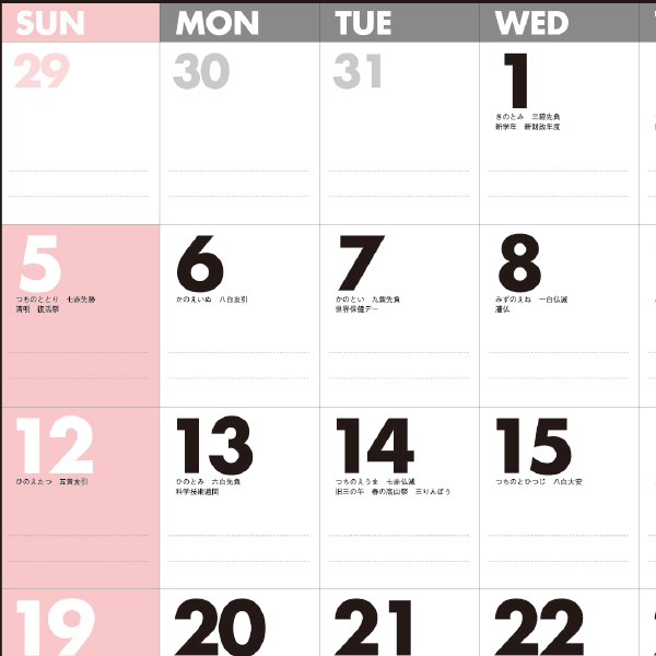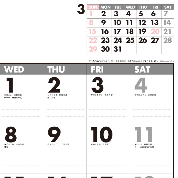 メモを書き込みやすく、実用性抜群のカレンダーです。